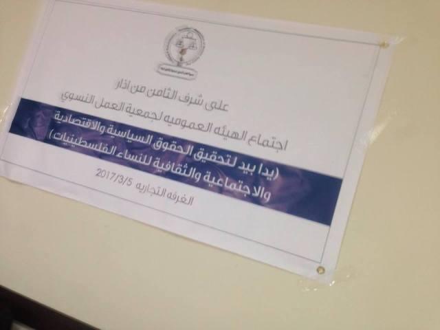 عقدت جمعية العمل النسوي اليوم الأحد في رام الله الجمعية العمومية لفروعها في الوطن الذي يعقد كل 3 سنوات لتشكيل مجلس إدارة جديد .