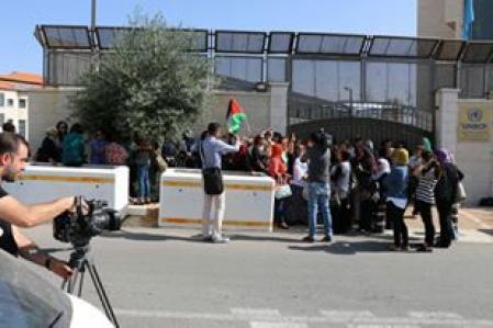 اثناء مشاركتنا في الوقفة الاحتجاجية التي اقيمت امام مقر الامم المتحدة برام الله صباح ١٤/١٠ و تسليم مذكرة للممثل الامم المتحدة في رام الله بخصوص انتهاكات المستوطنين والجيش تجاه شعبنا
